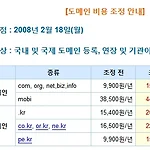 제 블로그의 도메인 등록기관인 호스트웨이에서 도메인 비용 조정 안내 메일이 왔습니다. 다행히도 저는 얼마전에 3년 연장을 해 놓아서 크게 부담은 없을 것 같네요. 다음주 월요일에 인상예정이니, 혹시 호스트웨이에서 도메인을 등록하거나 연장하실 분들은 빨리 처리 하시는 것이 좋을 듯 합니다. :)
