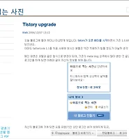 오늘 블로그에 들어 왔더니 이상한게 보입니다. tistory가 오픈 베타를 시작하면서 기존 1.0.6에서 1.1로 업데이트가 되었네요.