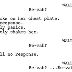 일전에 Wall-E 를 재미 있게 본적이 있었는데, 오늘 소금이님의 블로그를 통해서 Wall-E의 대본이 공개된 것을 알았습니다. 영화를 보던 중에 여자주인공(?)인 "이브"가 계속 귀에서는 "이바(이봐?)"로 들렸던 경험이 있습니다. 분명히 "이브"일텐데 말이지요. 그런데 오늘 대본을 보니 제 귀가 틀리지 않았네요.. ^^ 대본의 한 문장입니다. 영어공부하는데 도움이 될까 하여 우선 pdf 파일을 받아 놓고... 아이팟터치에 있는 Files Lite에 올려야 겠습니다. :)