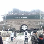 아침에 눈을 떠서 뉴스를 틀어 보니 큰 사건이 났었더군요. 바로 국보[國寶] 제 1호인 숭례문이 화재로 무너져 버렸다는 내용이었습니다. 회사가 그 근처라서 출퇴근을 하면서 하루에 한번씩 보게 되는데 이거 실감이 나지를 않았습니다. 출근길에 한정거장 전에 내려서, 그 모습을 담아 봤습니다. 역시 손폰이라 화질은 영 아닙니다. 삼성전자 본관쪽에서 바라본 모습입니다. 사진의 상부가 하얗게 날아 갔지만, 숭례문의 모습은 잘 나와 있습니다. 정말 지붕이 없어졌네요. -_- 숭례문의 주변에는 방송 3사의 보도 차량들이 가득차 있었습니다. 그리고 밤새 진화를 위해서 물을 뿌려서 인지 인근도로는 아직 젖어 있었구요. 화재가 진압이 되어서 인지 소방차는 2~3대만 남아 있었습니다. 방송사에서 나와서 화재로 전소된 숭례문..