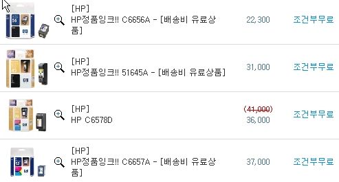 그래서 이번에는 동일 사이트의 잉크 가격을...