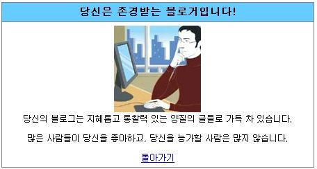 "나는 어떤 블로거 일까?"를 테스트 할 수 있는 곳은 http://heygom.com/whatblogger/ 을 방문 하시면 됩니다.