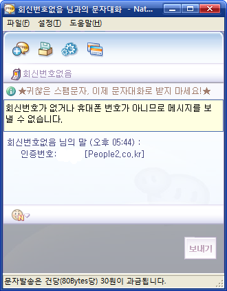오늘 피플2에 가입을 하려고 정보를 작성 중에 핸드폰 인증을 받는 화면에서 다시 보게 된 네이트온의 문자대화.