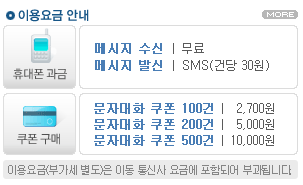 이용요금이 건당 30원으로 일반 핸드폰으로 보내는 요금과 동일하게 나옵니다. 주의해서 사용하세요.