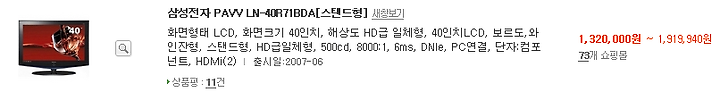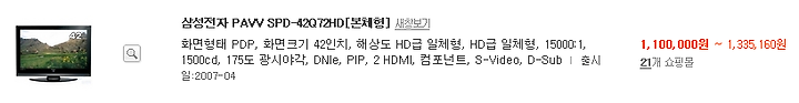 삼성 PAVV SPD-42Q72HD 라는 PDP TV와 삼성 PAVV LN40R71BDA라는 LCD TV 입니다. 각각의 상품을 네이버 쇼핑에서 찾아 봤습니다. 얼마인지는 알아봐야지요??