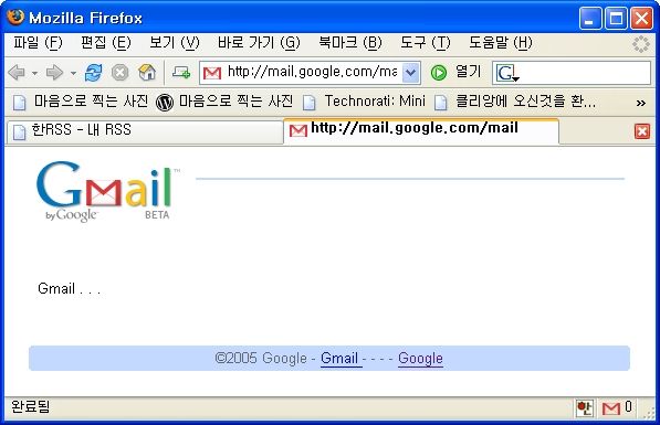 조금 전에 gmail을 확인 하기 위해 들어간 화면.