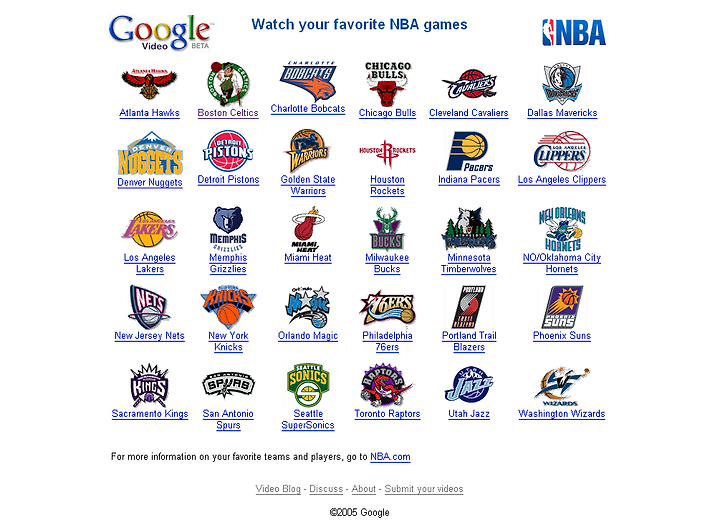 상단의 타이틀중 NBA에 들어가게 되면 아래 그림과 같이 모든 팀의 비디오를 볼 수 있게 해 놓았네요.