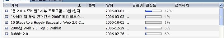 검색 결과와 함께, 관심도를 나태내 줍니다. 해당 관심도는 홈페이지에 "해당 포스트 구독여부, 조회여부, 스크랩여부 등을 기준"으로 측정한다고 되어 있네요. 새로운 평판(Reputation System)의 한 모습을 보여 줍니다.