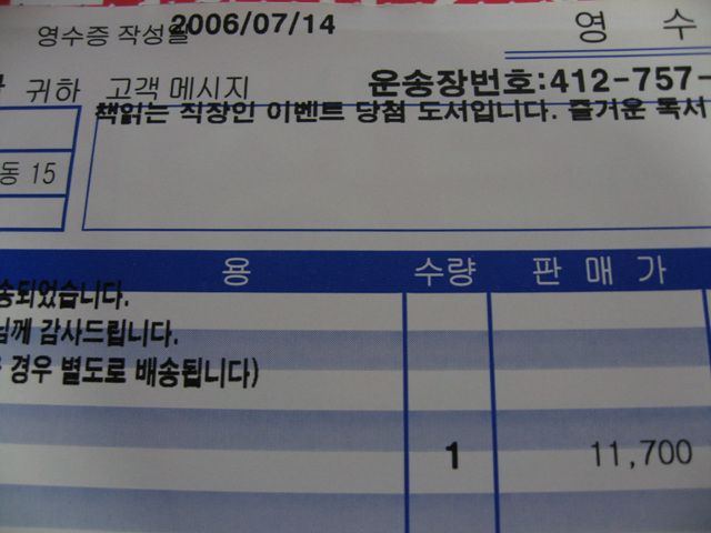 한권은 제가 주문 한 것인데.. 다른 한권은 출처를 잘 모르겠더군요. 물론 배송은 제 이름으로 되어 있구요.