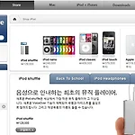 한국 시간으로 어제 저녁 무렵에 Apple에서 iPod Shuffle의 새로운 버전을 출시했습니다. 현재도 Apple 홈페이지를 장식하고 있는 놈이지요. 버튼을 최소화 하고 얼마전에 발표된 마이크&리모콘이 포함된 이어폰을 통해서 아이팟을 조정하는 것으로 생각 됩니다. 아래는 새로나온 셔플에 대한 동영상입니다. 그런데 더불어 충격적인 것은 기존의 아이팟 제품군의 가격이 전부 인상되었다는 것입니다. 기존 가격대비의 내용을 보면... 가격인상폭이 상당하네요. 아이팟 나노 8GB : 180,000원 -> 249,000원 (+69,000원) 아이팟 나노 16GB : 240,000원 -> 329,000원 (+89,000원) 아이팟 클래식 120GB : 300,000원 -> 409,000원 (+109,000원) 아이..