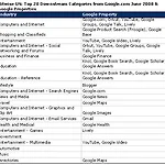 ReadWriteWeb에 재미있는 기사가 올라왔습니다. 얼마전 Google이 신규로 런칭한 Virtual World 서비스인 Lively 이후의 신규 서비스는 무었일까에 대한 예측 내용입니다. Hitwise에서 이전에 health(건강), travel(여행), virtual world(가상 세계)에 진출할 것이라는 예상을 했었고, 3개 중 health와 virtual world가 현실화 되었다고 전하고 있습니다. 그래서 이번에는 다음 신규 서비스로 위에 있는 표 중에서 Automotive(자동차)와 Music(음악)을 예상하고 있네요. 또한 기존에 예상을 했던 여행에 대한 이야기도 하고 있습니다. 하지만 결론으로는 자동차와 음악의 경우 기존에 경쟁자들이 포진하고 있기도 하고, 여행의 경우에는 쉽게 진입할..