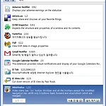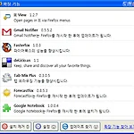 Firefox도 2.0으로 버전업을 했고 지난번에 깔았던 extension과의 차이도 알아 볼 겸 포스팅을 합니다. Adsense Notifier - 블로그에 설치한 Adsense가 얼마나 모아졌는지 확인 해 줍니다. :)del.icio.us - 유명한 북마크 공유 사이트인 del.icio.us 에 현재 페이지를 바로 post하거나, 제 계정에 있는 북마크 들을 바로 확인할 때 사용합니다.DOM Inspector - 처음 깔때 부터 설치되어 있던 것.. 잘 모름.. ^^FasterFox - 파이어 폭스의 빠르기를 많이 빠르게 해 주는 익스텐션FxIF - 사진의 Exif 정보를 오른쪽 마우스 버튼을 통해 한번에 보여 주는 익스텐션. 성능이 그리 좋지는 않음.Gmail Notifier / Google Cal..
